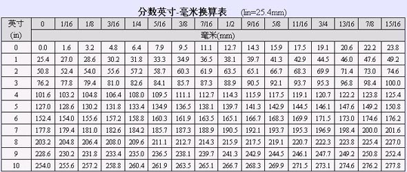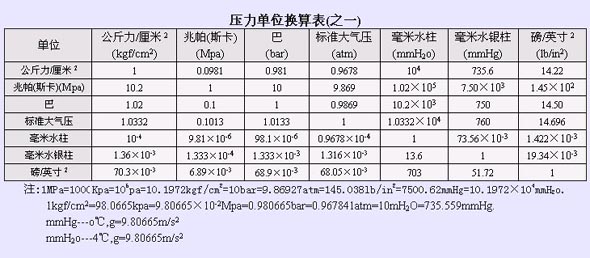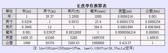 常用單位換算表