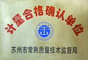常熟市技術監督局頒發的《計量合格確認單位證書》