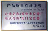 常熟市產品質監所《產品質量驗證證書》
