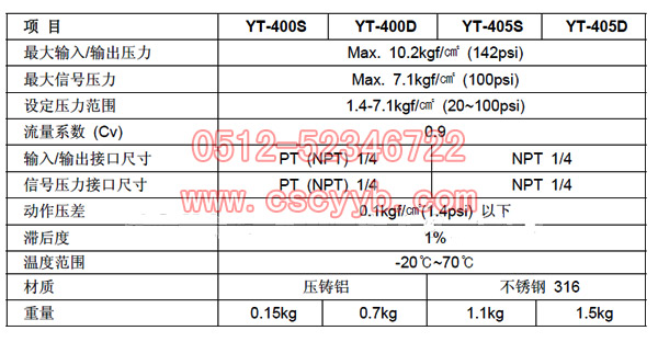 | YT-400,YT-405氣鎖閥 氣鎖閥YT-400,YT-405系列產品是把主氣源作為信號壓力,當信號壓力低于氣鎖閥設定壓力時,切斷YT-400內部氣路,阻止空氣流動的裝置。主要用途是安裝在控制閥上,當工廠的主氣源壓力因停電,泄漏等原因下降到設定壓力以下時,自動關閉從定位器通往執行機構的氣路,保持當前閥位開度。  產品特性 1.尺寸小,重量輕,不用支架固定安裝,可以直接用導管固定連接。 2.對于0.1kgf/㎠ 以下微小壓差變化,反應也非常敏感。 3.YT-400涂層經環氧聚酯電噴處理,耐腐蝕性能強,而且YT-405是不銹鋼材質,可在腐蝕性環境使用。 4.內置100微米濾網,可防止異物進入。 YT-400產品參數