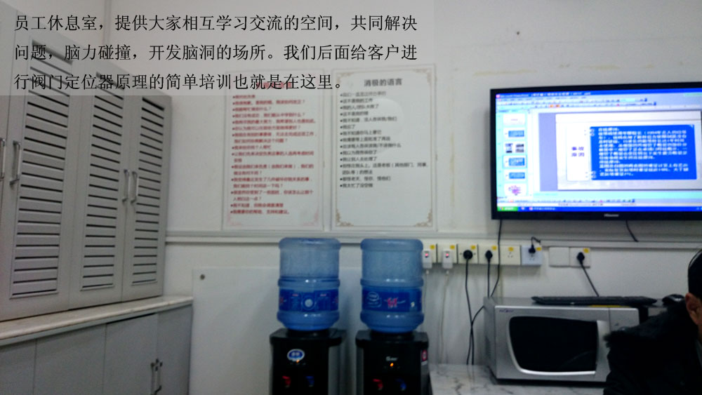 員工休息室,提供大家相互學(xué)習(xí)交流的空間,共同解決問(wèn)題,腦力碰撞,開(kāi)發(fā)腦洞的場(chǎng)所。我們后面給客戶進(jìn)行閥門(mén)定位器原理的簡(jiǎn)單培訓(xùn)也就是在這里。