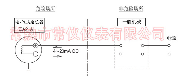 請不要把固定電壓電源連接到本安防爆結構的電氣定位器EA90A上,如果過大的電流流經定位器內部的話,可能會損壞二極管。