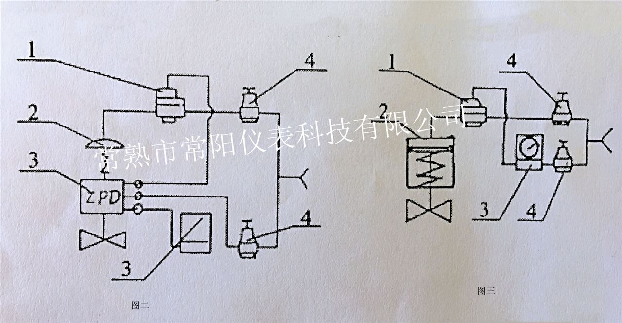 1——常陽YT-300型氣動增速器; 2——氣動調節閥; 3——氣動(電動)調節器; 4——空氣減壓器。 5——氣動(電-氣)閥門定位器。