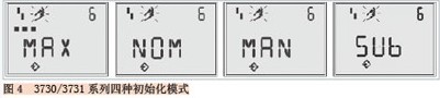 3730/3731系列可有四個初始化模式:MAX最大行程初始化模式、NOM額定工作行程初始化模式、MAN手動行程初始化模式、再就是緊急情況下的SUb替換初始化模式,參見圖4。