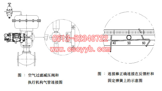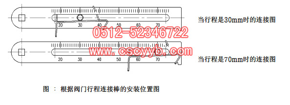 在執行機構和閥桿連接件上的反饋桿連接棒必須要連接在反饋桿上和閥門行程一致的刻度位置。