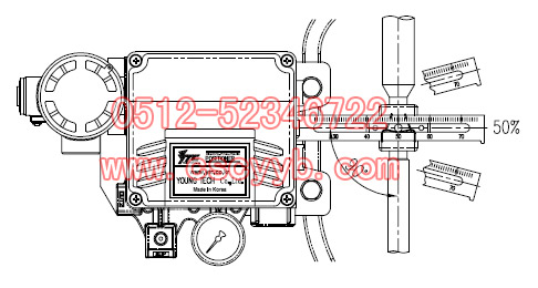 (7) 請確認當閥門行程在50%時,YT-1200L的反饋桿是否成水平。如果不保持水平,請調整支架和反饋桿連接件,使反饋桿成水平。如果安裝YT-1200L后反饋桿不成水平,則對產品的線性會有影響。