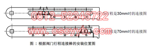 ② 在執行機構和閥桿連接件上的反饋桿連接棒,必須要連接在閥門行程和刻在反饋桿上的刻度一致的位置。