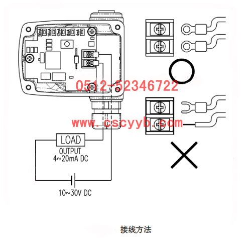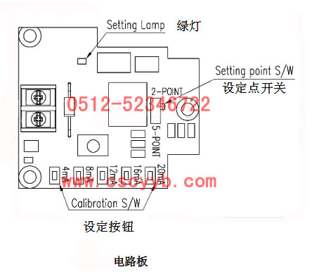 3、制作好相應(yīng)支架和反饋桿后,正確安裝閥位變送器并擰緊螺絲。 接線 ① 考慮到震動和碰撞,請使用O型接線頭。 ② SPTM-5V系列產(chǎn)品需要單獨供電。電壓范圍是9-27V直流電壓,最大不能超過30V。 ③ 考慮到電磁波的影響,電纜不能布置在高容量電機或馬達(dá)附近。 ④ 連接電源時正負(fù)極不能接反。 ⑤ 在防爆區(qū)域安裝時,要遵守本質(zhì)安全防爆規(guī)定。 ⑥ 接線時必須切斷電源。 ⑦ 接線時要注意,以免電纜表皮受損。 ⑧ 產(chǎn)品內(nèi)部或外部要正確接地。 連接方法 ① 用十字螺絲刀擰開產(chǎn)品外殼上的4個螺絲,并打開外殼。 ② 擰開接線端子上的2個螺絲。 ③ 通過SPTM-5V的電源連接孔引入電纜。 ④ 為了防止接線脫落,請使用O型接頭進(jìn)行連接。 ⑤ 把螺絲插入O型接頭,并固定在相應(yīng)正負(fù)極接線柱上。要用1.5Nm(15kfgcm)的力矩擰緊螺絲。  調(diào)整 設(shè)定點開關(guān)的選擇 可以選擇設(shè)定點的數(shù)量,分為2點設(shè)定和5點設(shè)定2種設(shè)定方法。大部分只需要進(jìn)行 2點設(shè)定,如果現(xiàn)場要球更精確的反饋信號,那么請進(jìn)行5點設(shè)定。 ①2點設(shè)定 2點設(shè)定是指定全行程的零點和 量程即0%和100%,中間值就會自動設(shè)定。 ②5點設(shè)定 5點設(shè)定是指,把全行程分為5個點(0%,25%,50%,75%,100%)進(jìn)行設(shè)定,中間值會自動設(shè)定。這種設(shè)定方法雖然過程繁瑣但反饋精度會更高。  設(shè)定方法 電路板2點設(shè)定方法 ①把電路板上的設(shè)定點開關(guān)推向2-POINT處。 ②給定位器輸入4mA電流,使閥門行程達(dá)到0%位置。 ③按住電路板上寫有4mA的按鈕3~4秒鐘,電路板上面的綠燈會閃爍,說明已經(jīng)保存。 ④在給定位器輸入20mA電流,使閥門行程達(dá)到100%位置。 ⑤按住電路板上寫有20mA的按鈕3~4秒鐘,電路板上面的綠燈會閃爍,說明已經(jīng)保存。 5點設(shè)定方法 ①把電路板上的設(shè)定點開關(guān)推向5-POINT處。 ②給定位器輸入4mA電流,使閥門行程達(dá)到0%位置。 ③按住電路板上寫有4mA的按鈕3~4秒鐘,電路板上面的綠燈會閃爍,說明已經(jīng)保存。 ④在給定位器輸入8mA電流,使閥門行程達(dá)到25%位置。 ⑤按住電路板上寫有8mA的按鈕3~4秒鐘,電路板上面的綠燈會閃爍,說明已經(jīng)保存。 ⑥按上述方法繼續(xù)設(shè)定對應(yīng)于50%,75%,100%行程的12mA,16mA,20mA。 返向輸出設(shè)定方法(2點設(shè)定為例) 如果要設(shè)定成閥門行程在0%時反饋20mA,閥門行程在100%時反饋4mA,方法如下。 ①給定位器輸入4mA電流,使閥門行程達(dá)到0%位置。 ②按住電路板上寫有20mA的按鈕3~4秒鐘,電路板上面的綠燈會閃爍,說明已經(jīng)保存。 ③在給定位器輸入20mA電流,使閥門行程達(dá)到100% 位置。 ④按住電路板上寫有4mA的按鈕3~4秒鐘,電路板上面的綠燈會閃爍,說明已經(jīng)保存。